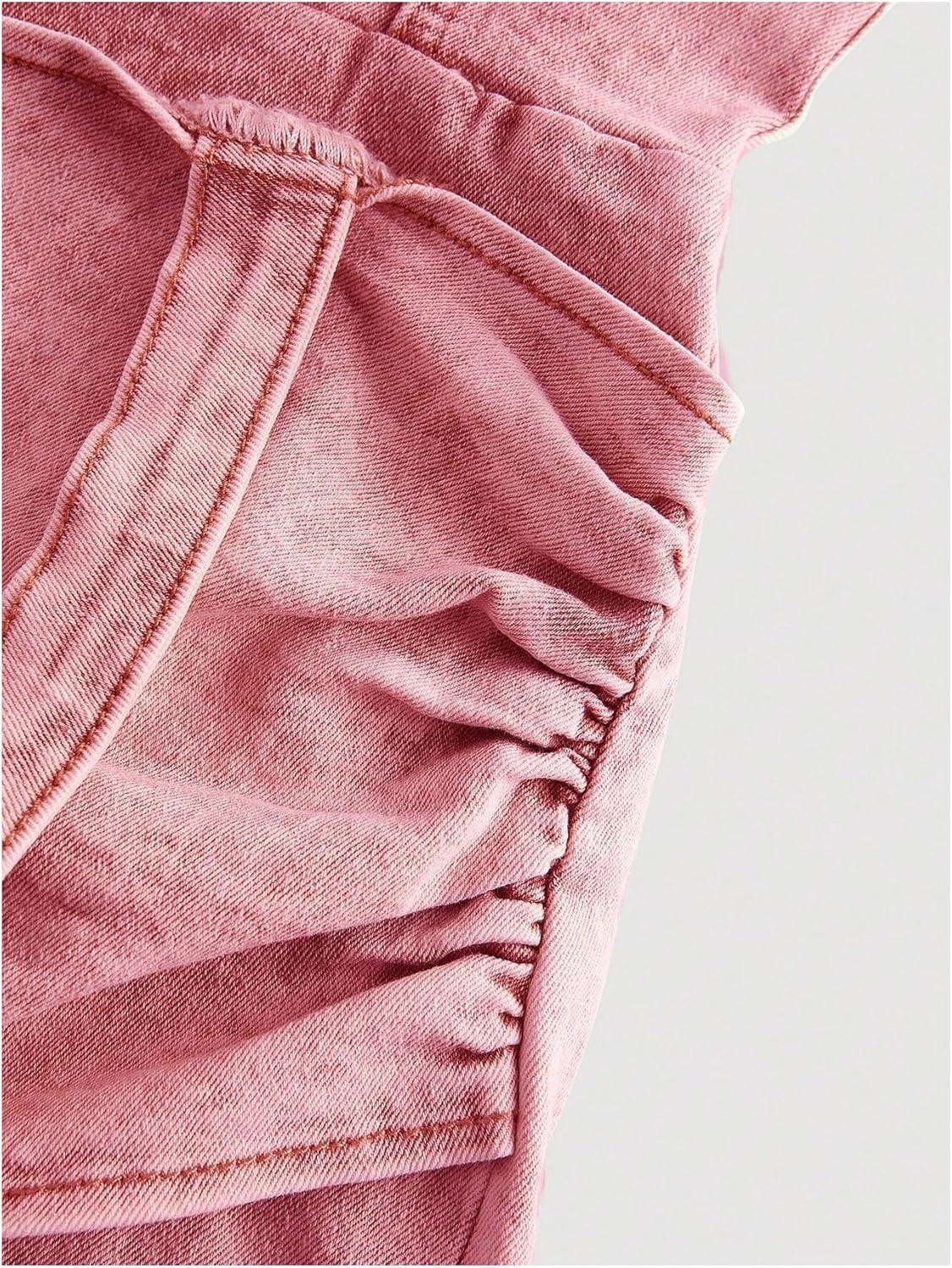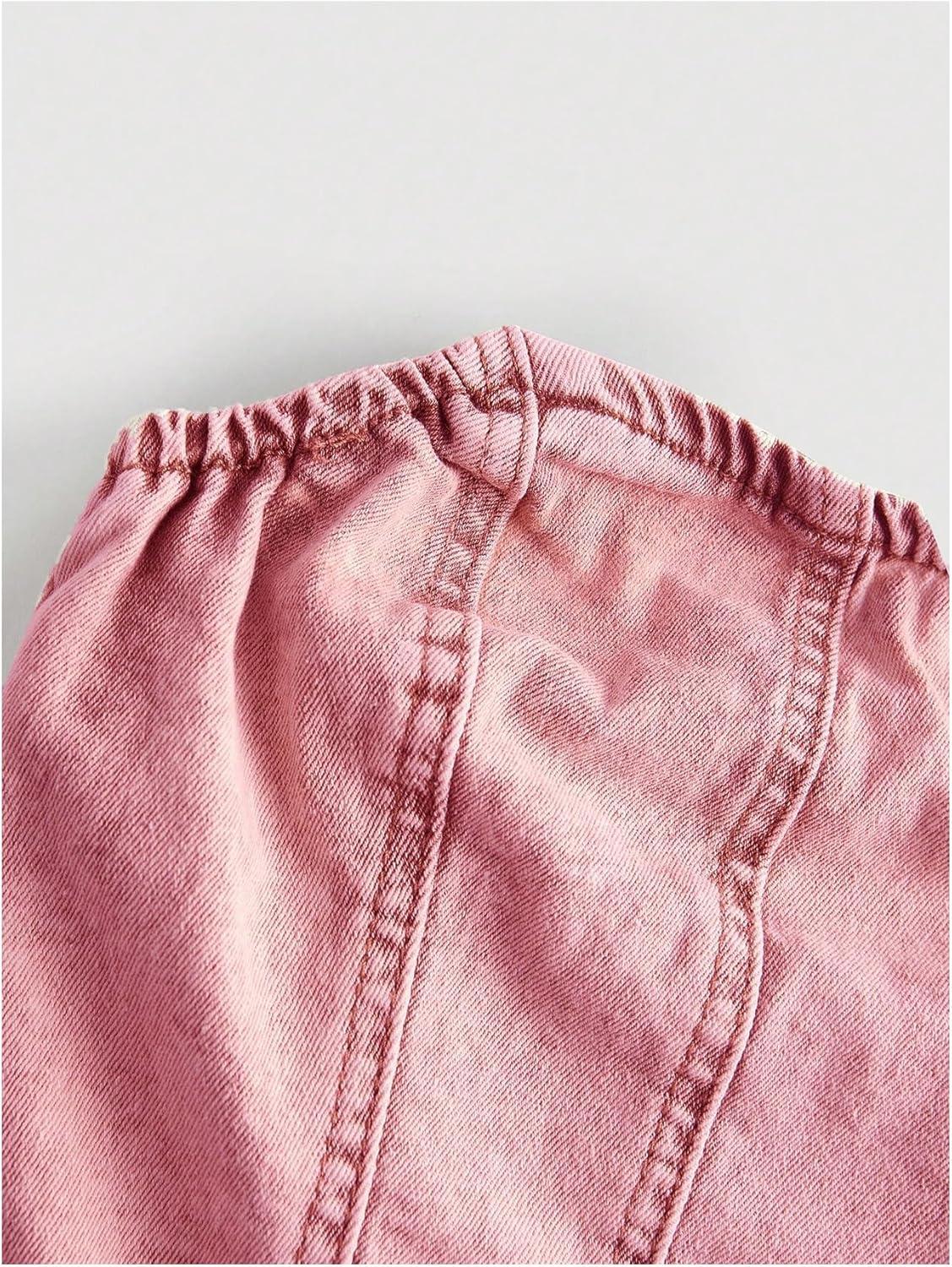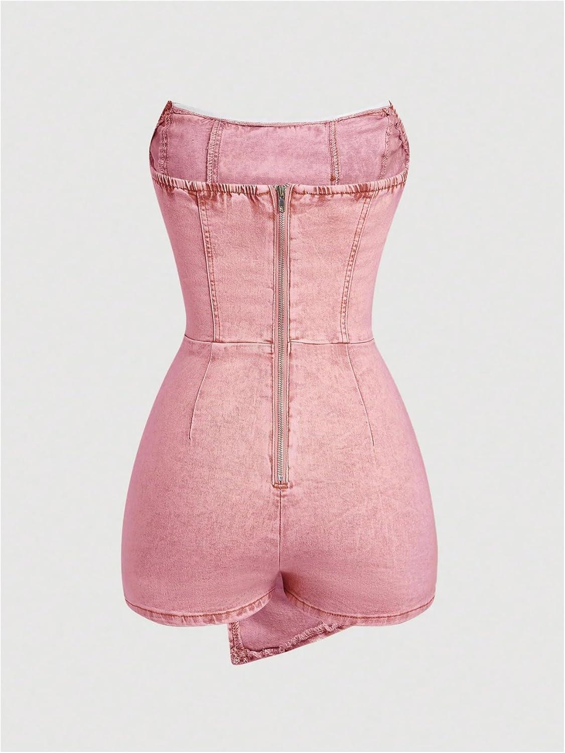 SOLY HUX Women’s Y2k Tube Top Denim Romper Wrap Strapless Bodycon Short Jumpsuits(Plain Pink)