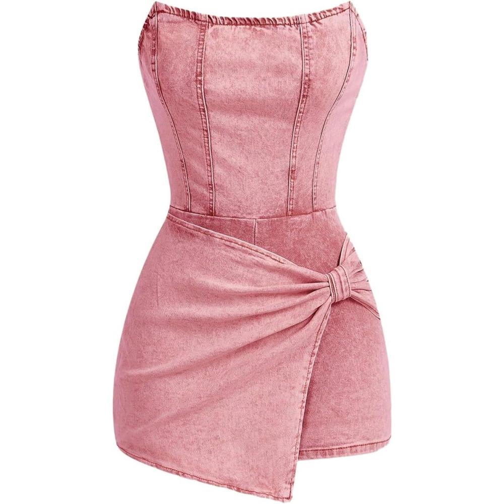 Be the first to review “SOLY HUX Women’s Y2k Tube Top Denim Romper Wrap Strapless Bodycon Short Jumpsuits(Plain Pink)”