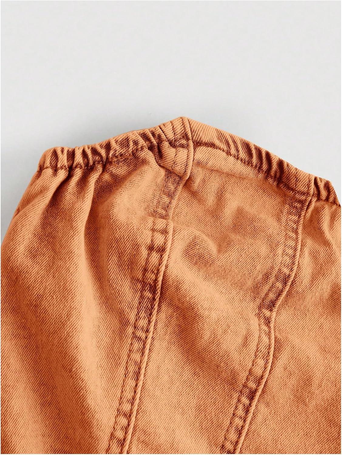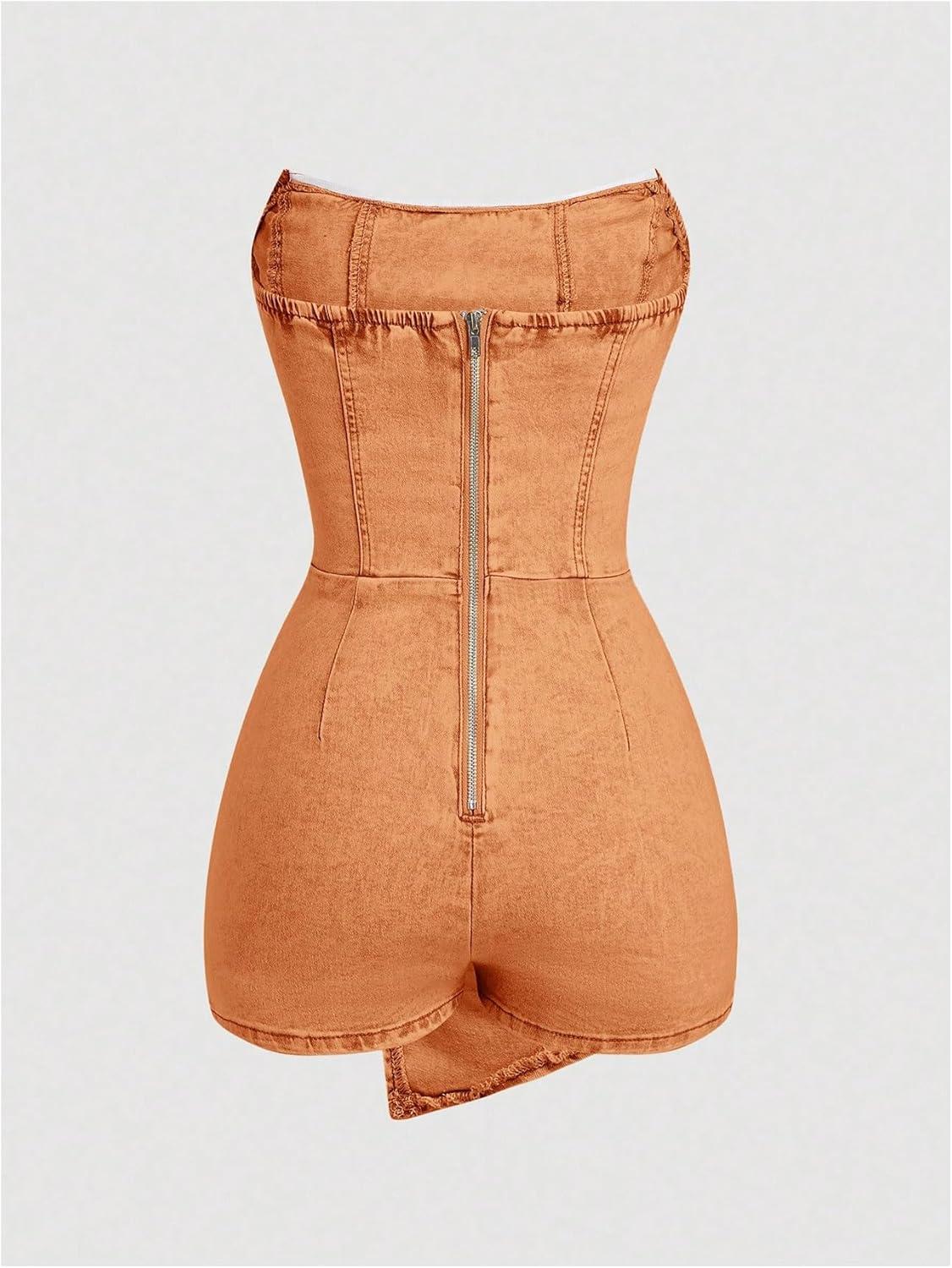 SOLY HUX Women’s Y2k Tube Top Denim Romper Wrap Strapless Bodycon Short Jumpsuits(Pure Orange)