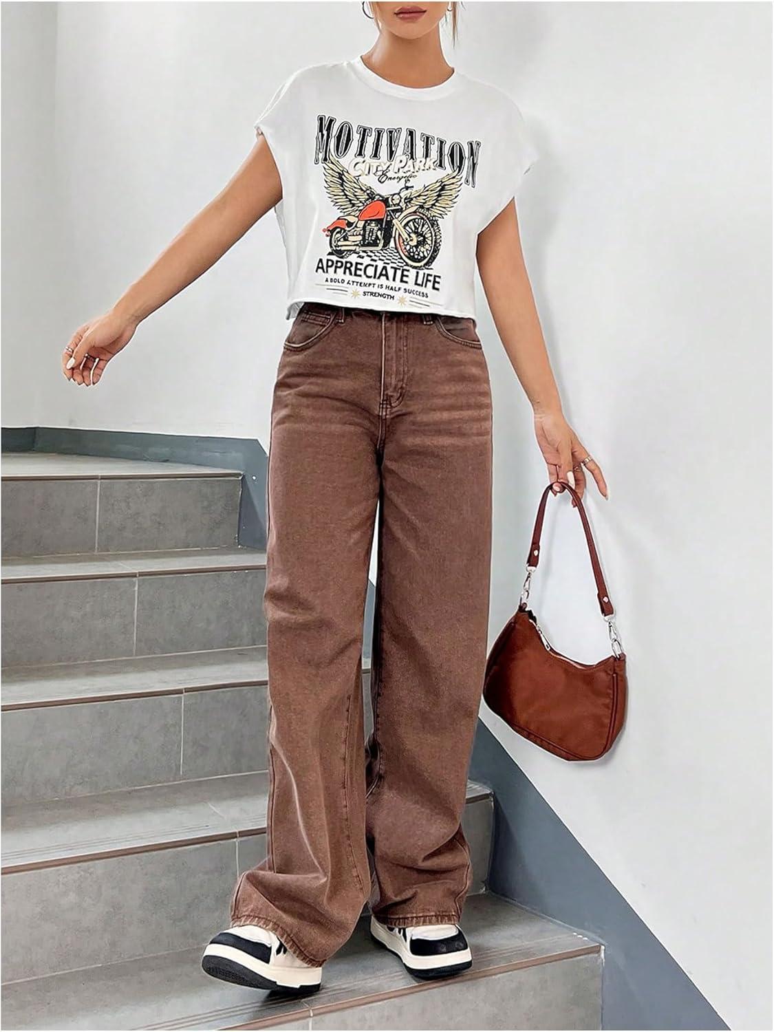 SOLY HUX Women’s Y2k Vintage Graphic Short Sleeve Tee Tops Crew Neck Crop Tops for Summer Going Out T Shirts(White Motocycle)