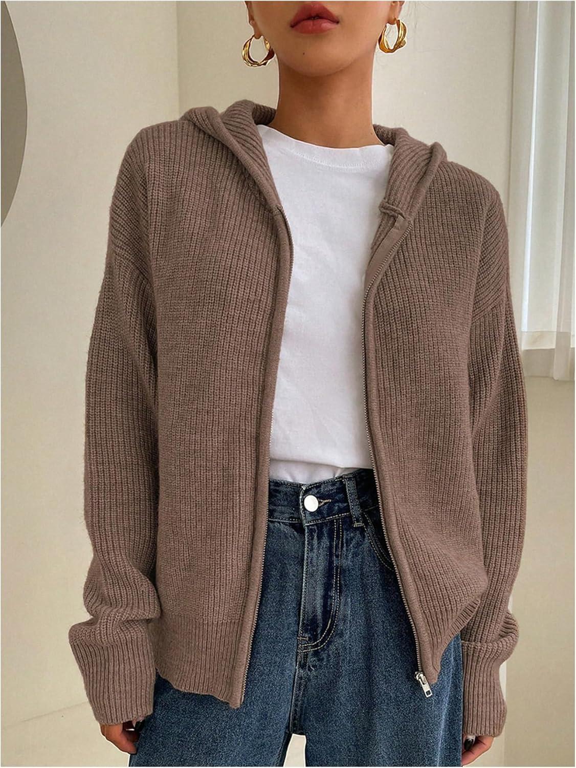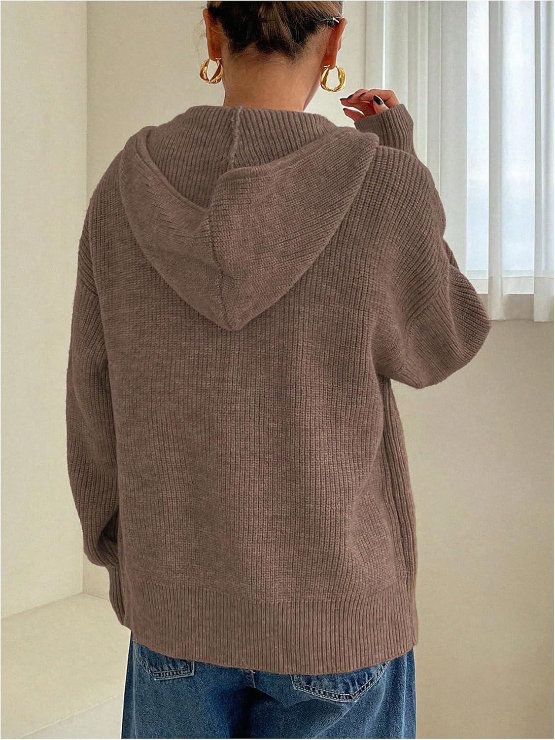 SOLY HUX Women’s Zip Up Hooded Cardigan Sweater Knitted Drop Shoulder Fall Hoodies Outerwear(Coffee Brown)
