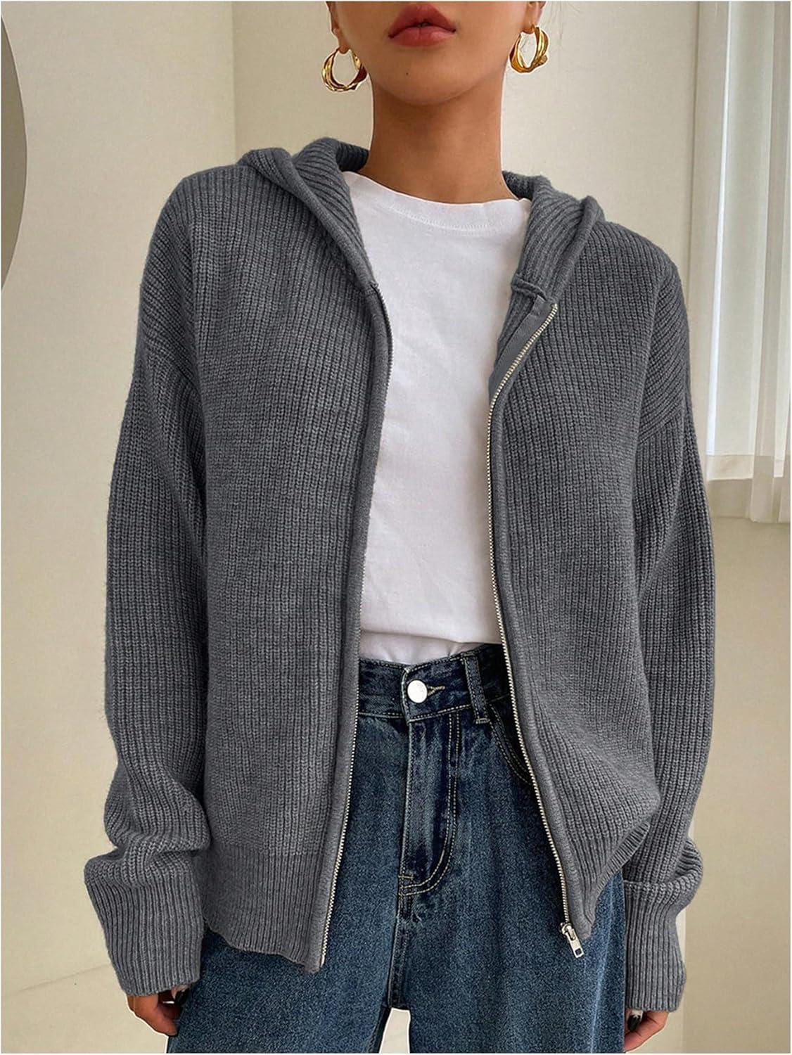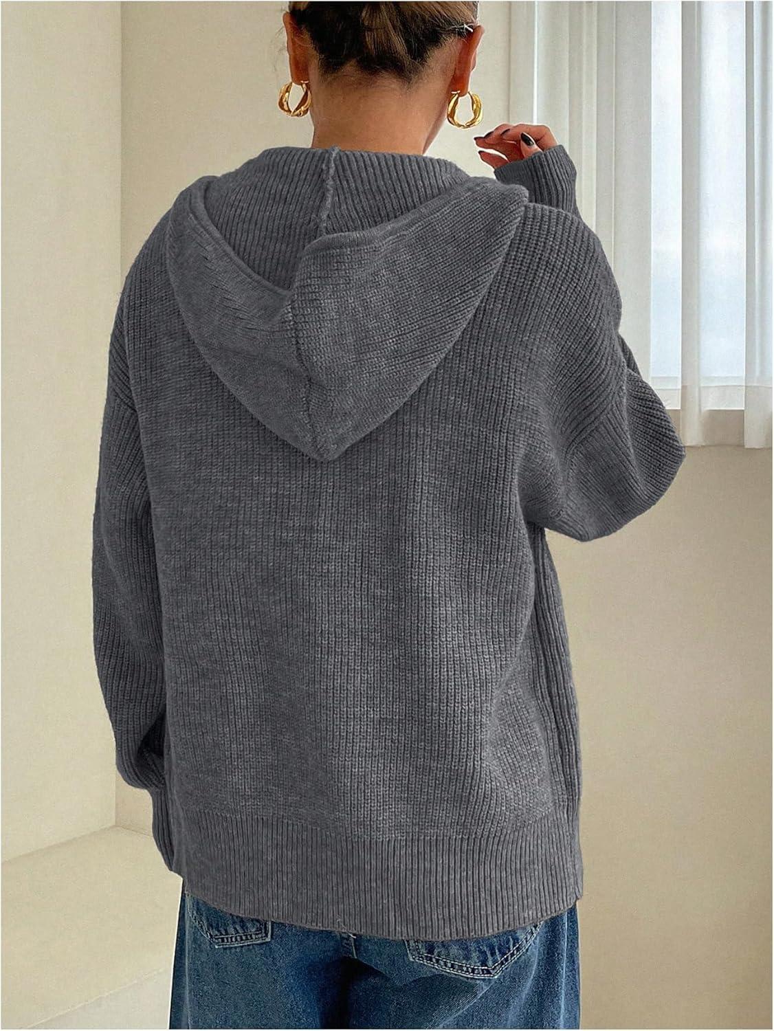 SOLY HUX Women’s Zip Up Hooded Cardigan Sweater Knitted Drop Shoulder Fall Hoodies Outerwear(Dark Grey)