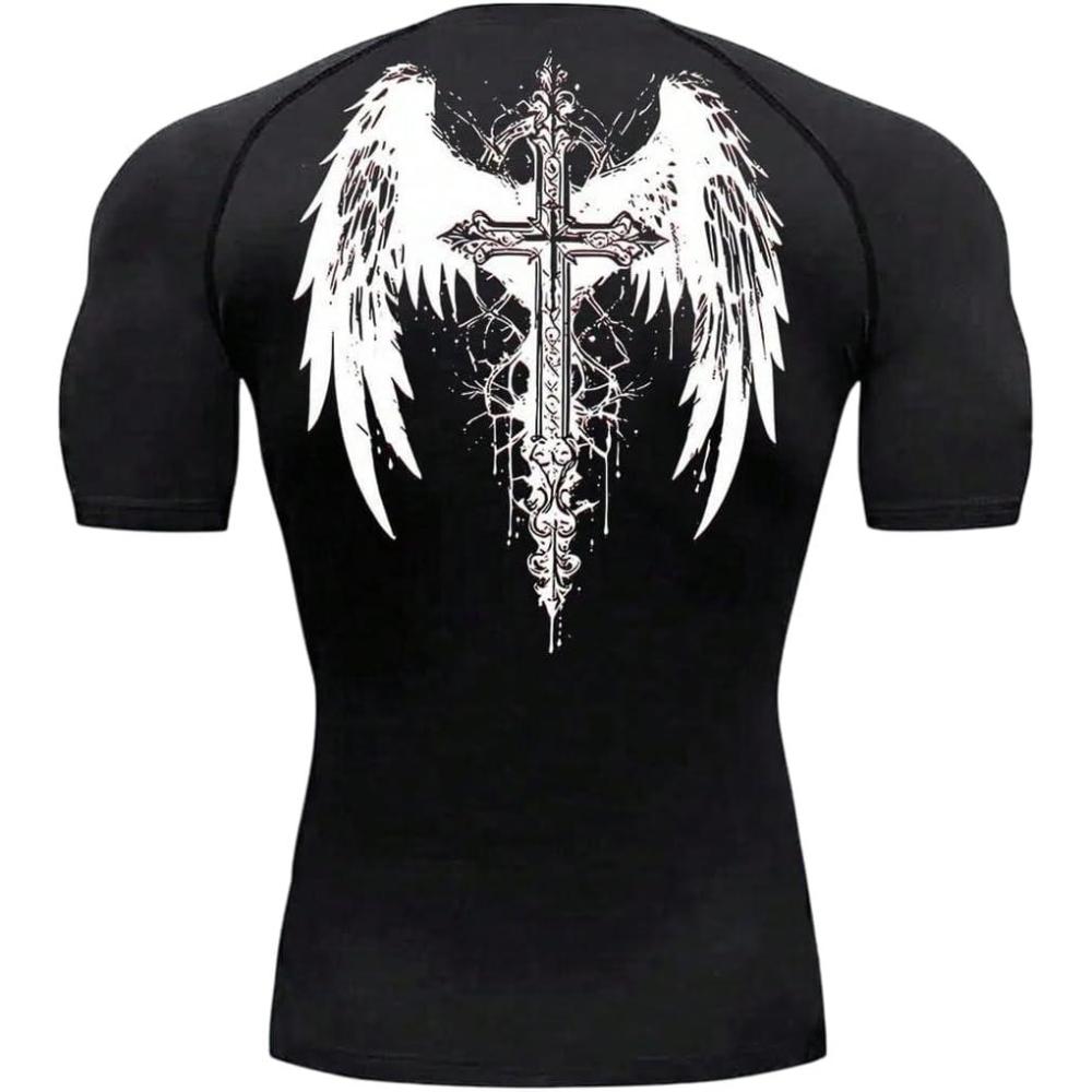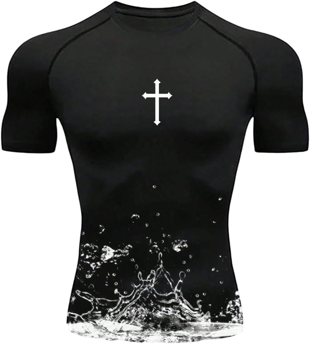 SOLY HUX Workout Shirts for Men Gothic Graphic Tees Short Sleeve Athletic T Shirt Running Gym Tops(Black Cross)